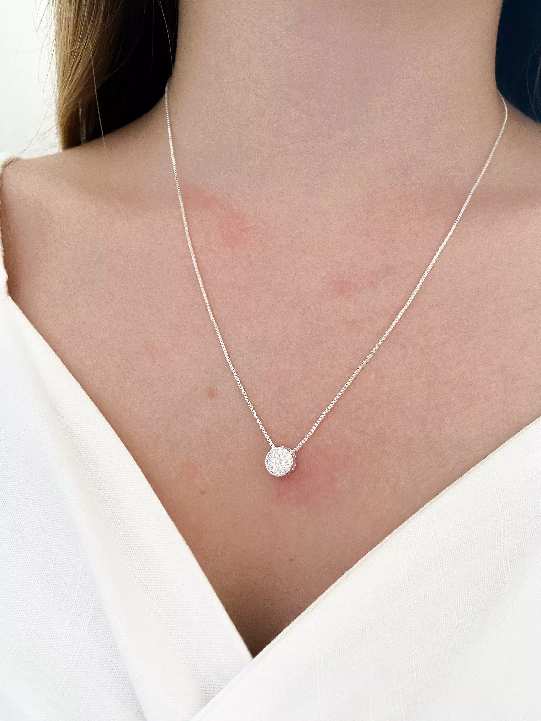 Colar pingente redondo cravejado